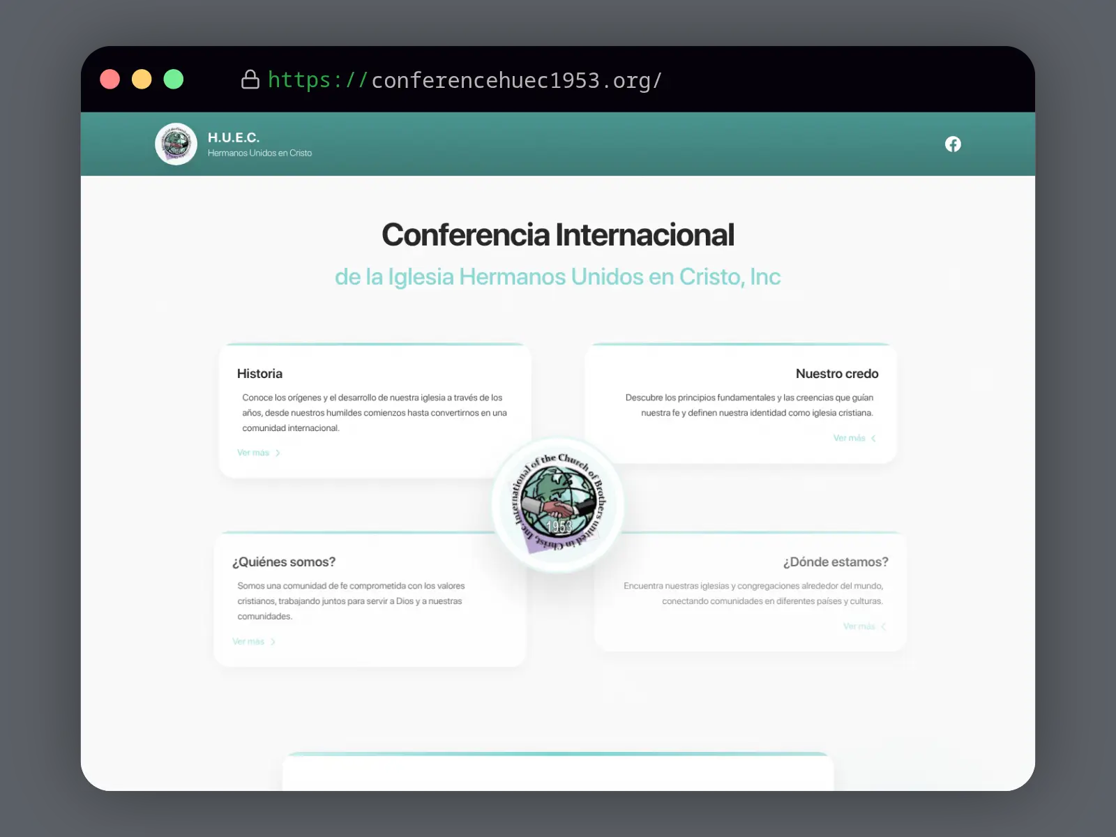 Página web institucional con la historia, información, ubicaciones y personas de la congregación, mejorando la comunicación con la comunidad.
