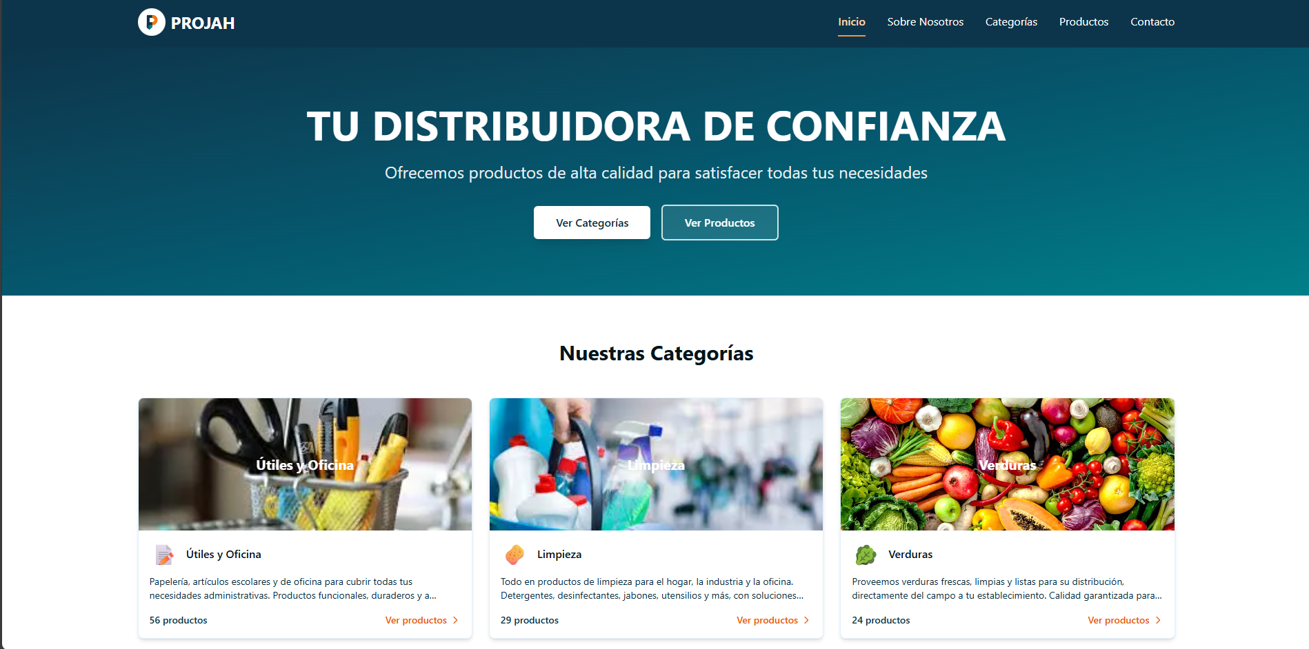En el sector de ventas, la presentación del producto es tan crucial como la logística. Projah requería una herramienta digital que mostrara su catálogo de manera organizada y profesional.